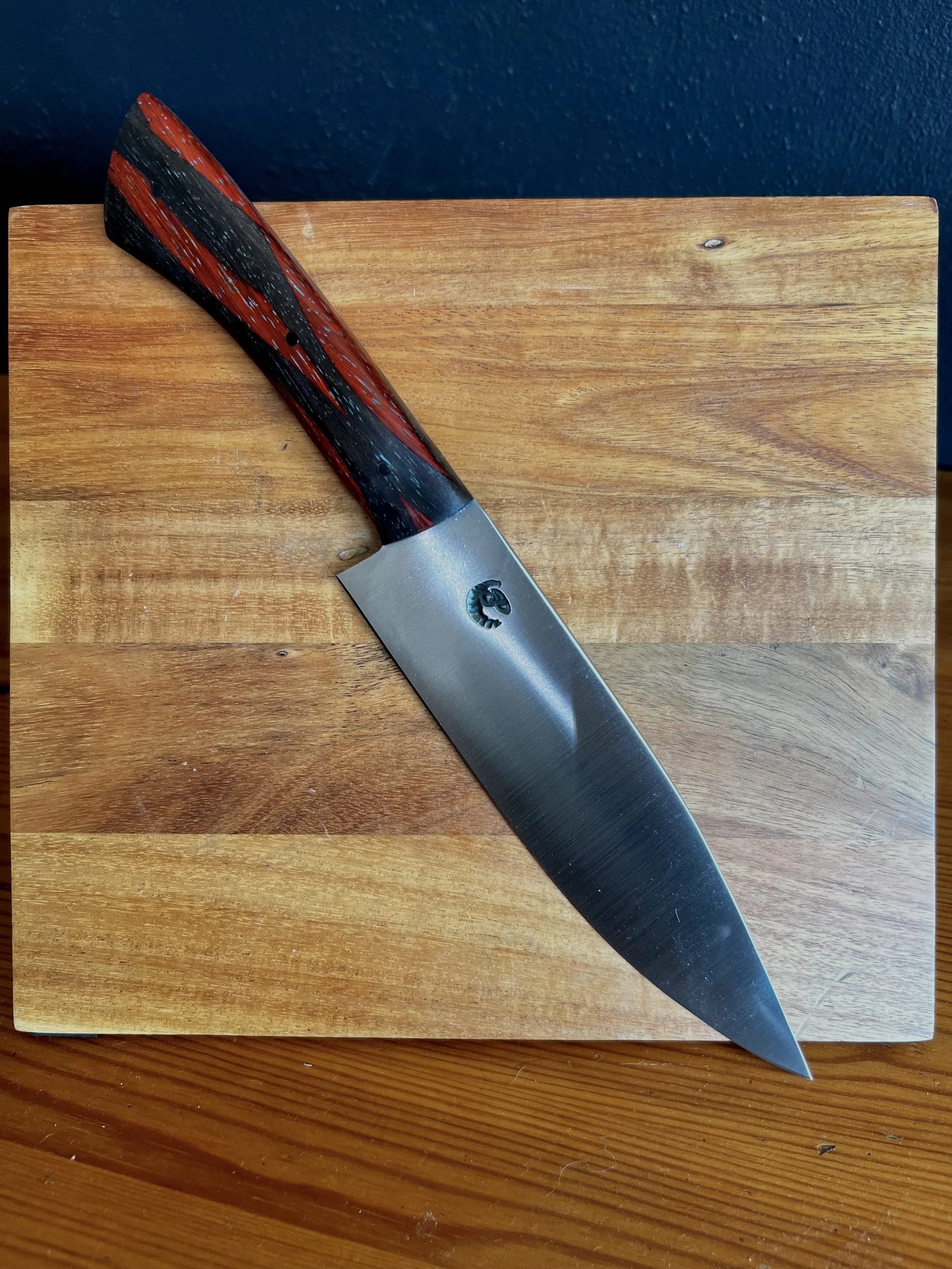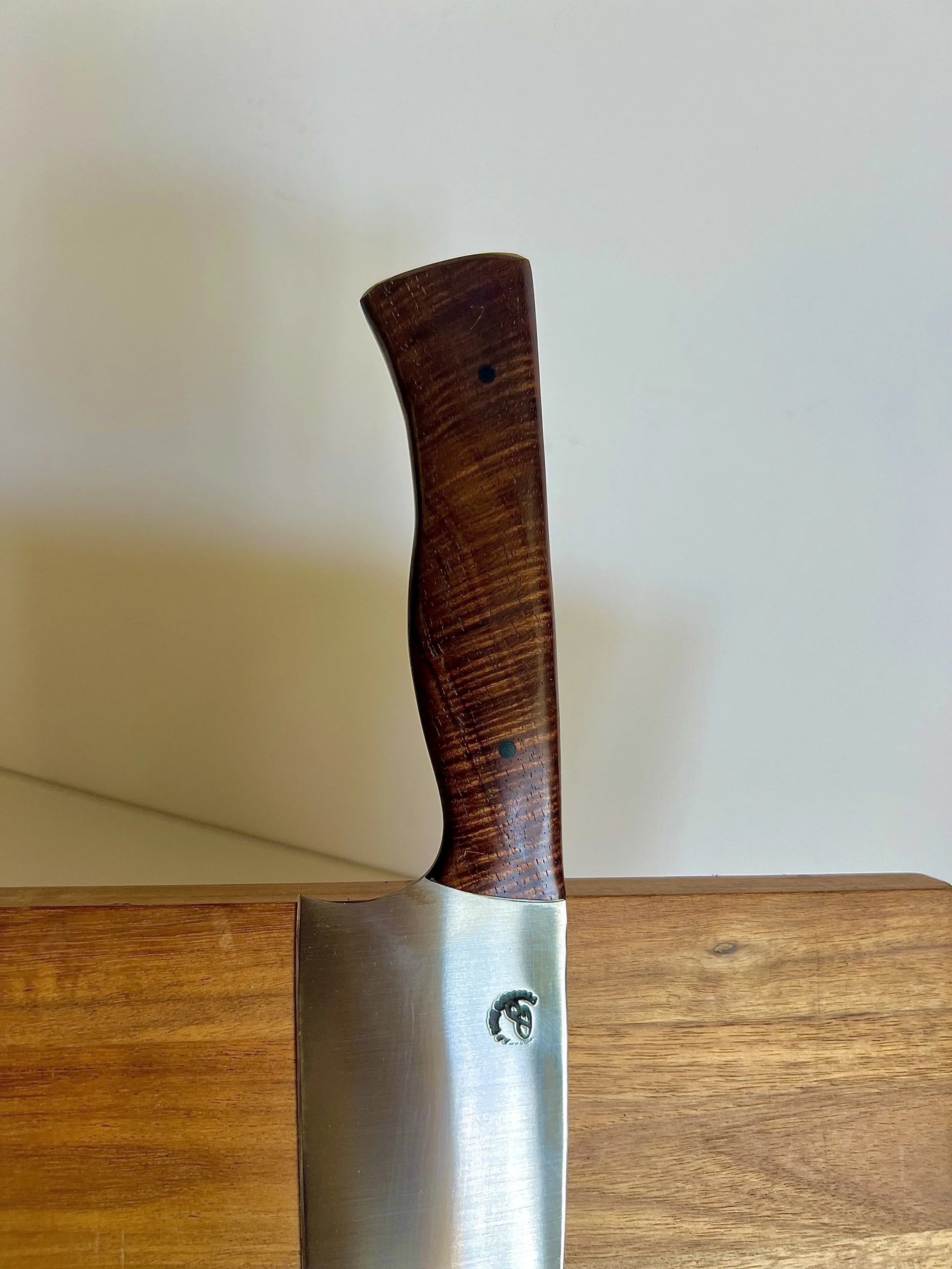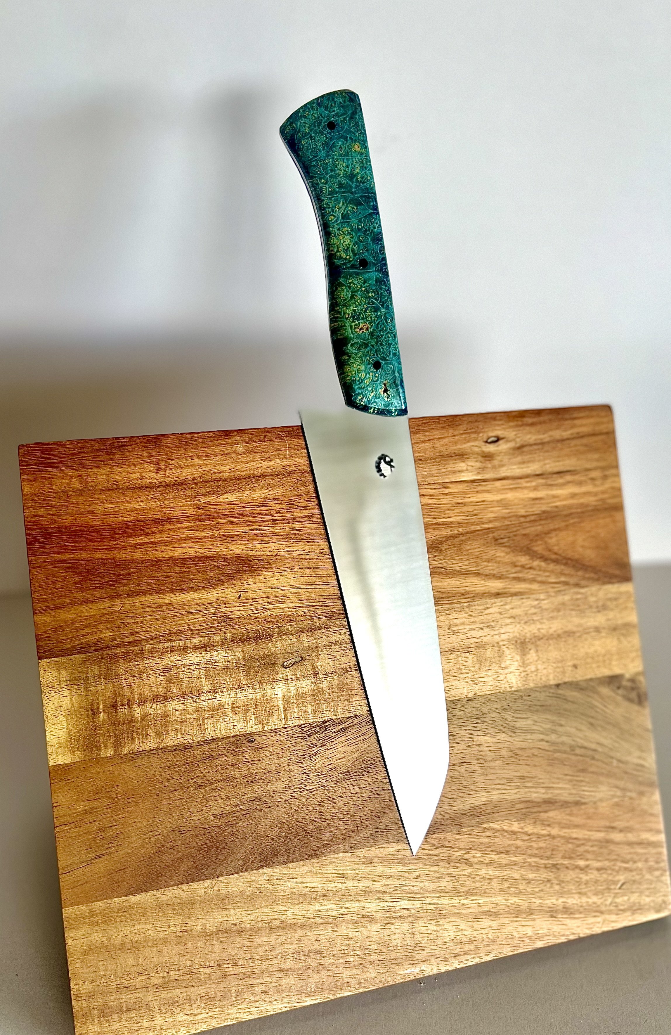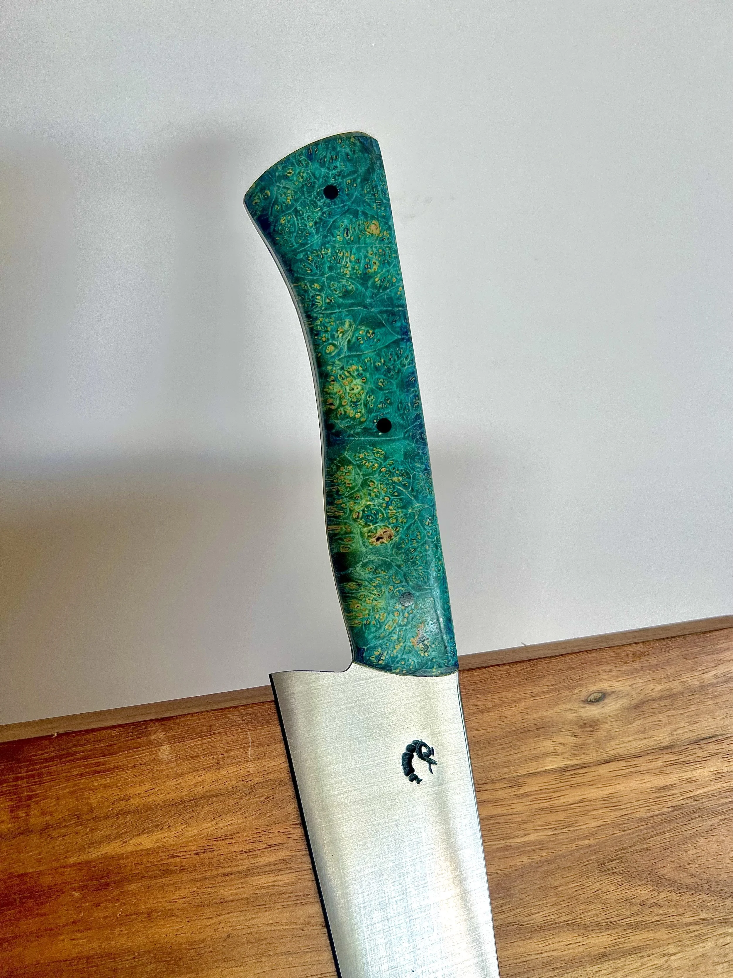 All wood handles go through a stabilization process where the wood soaks up resin and then is baked to seal it in. This process makes the wood harder and more durable. To help keep the wood protected, periodically place a food safe wax or oil on handle.