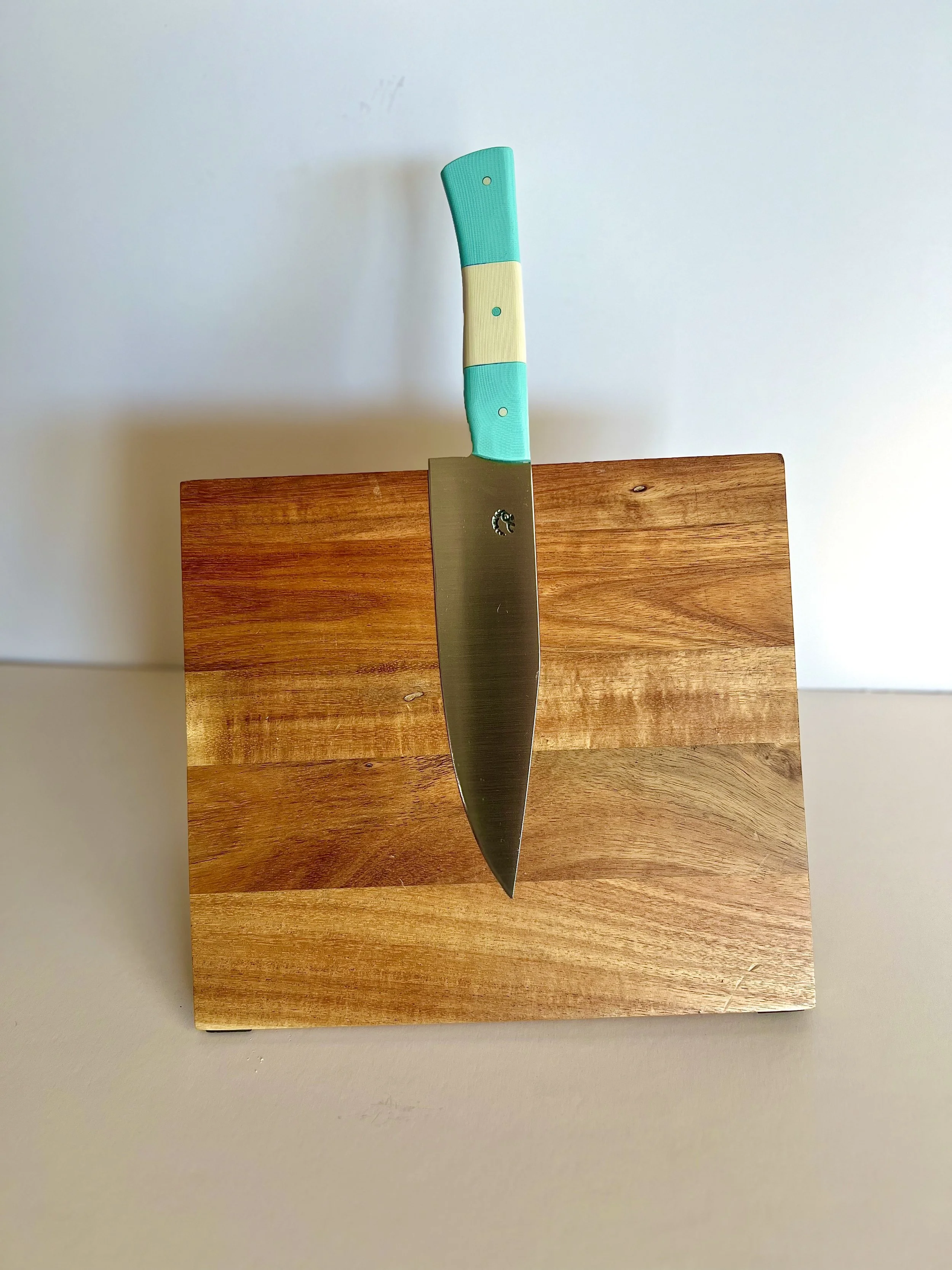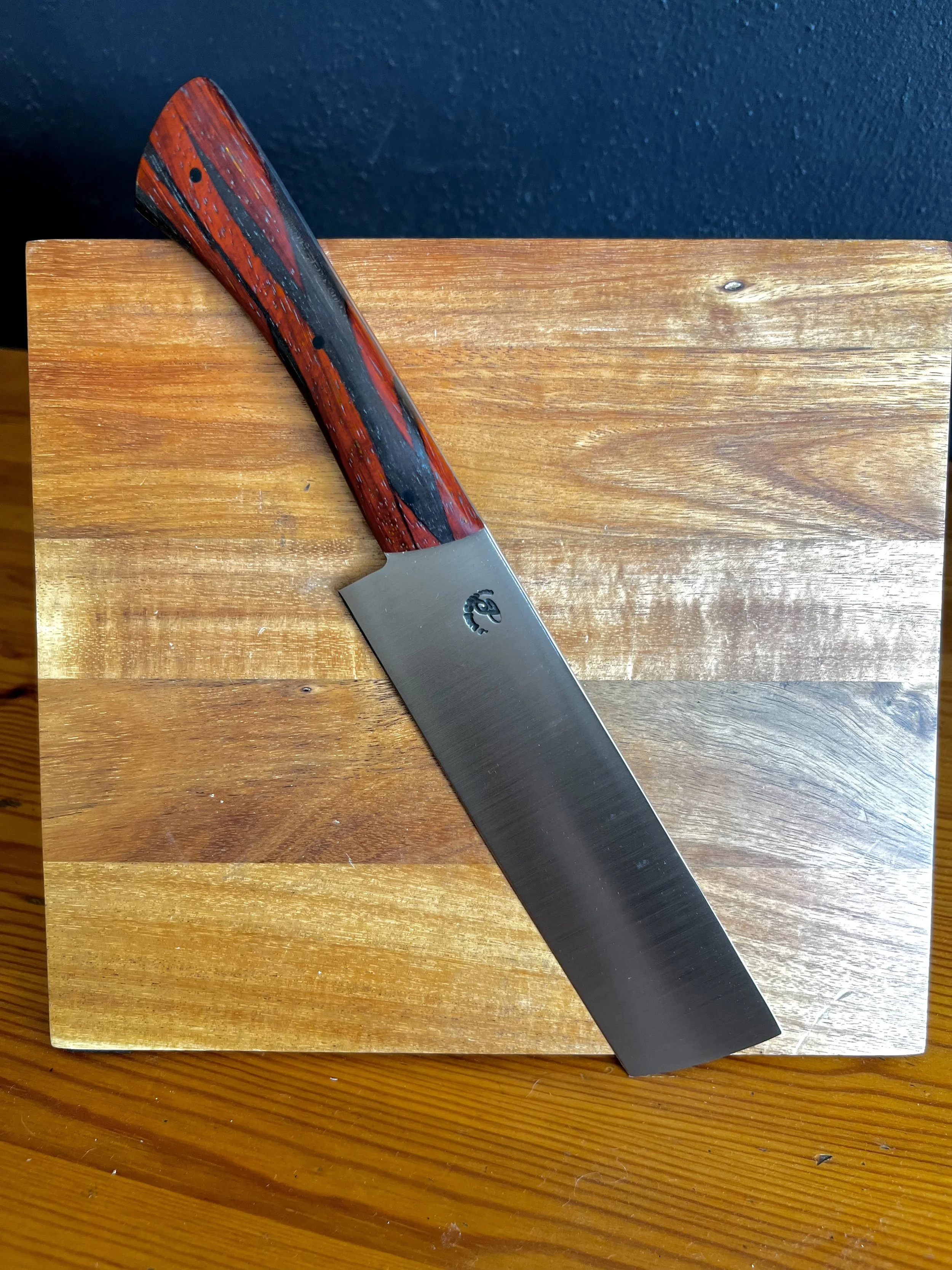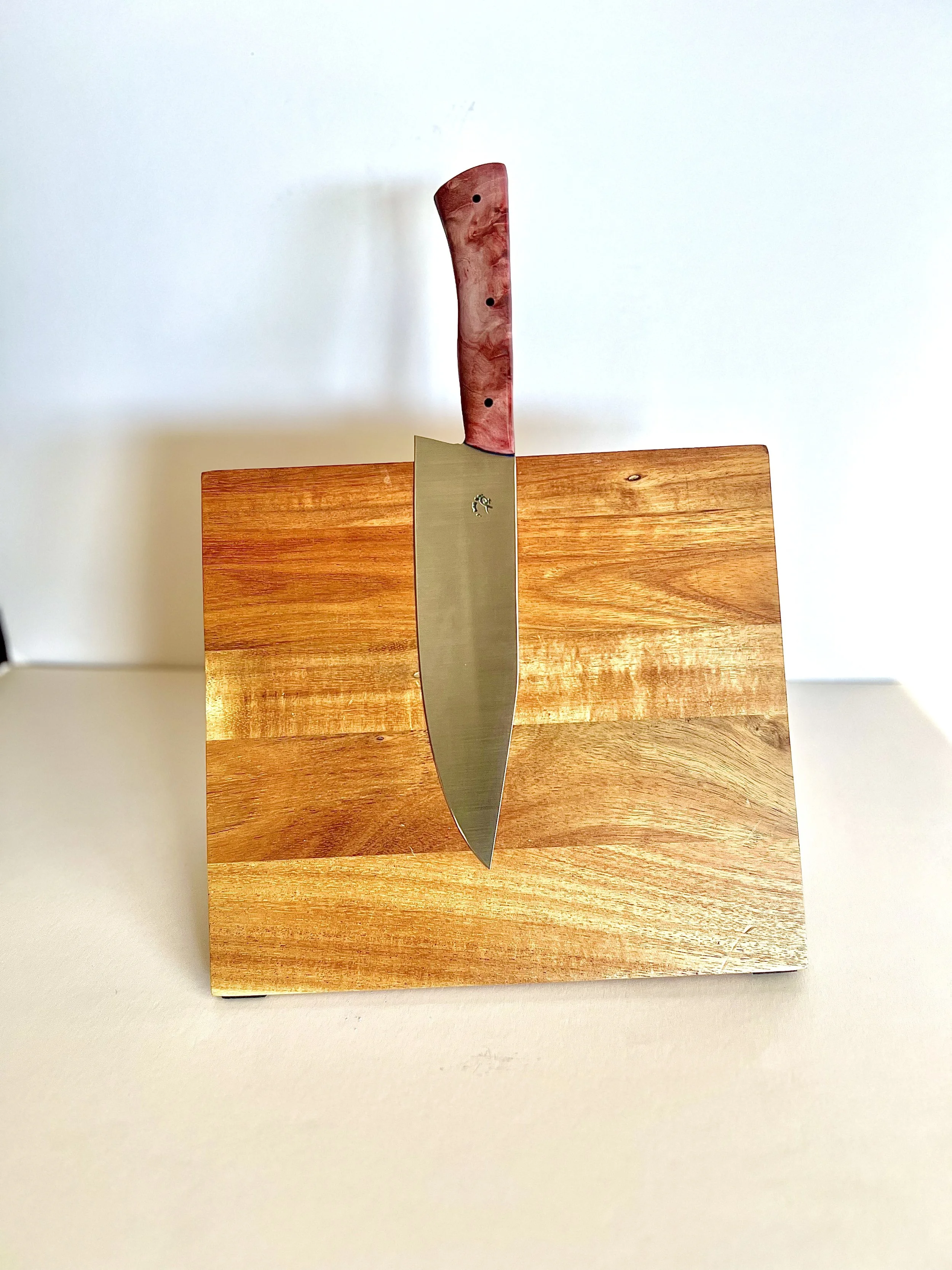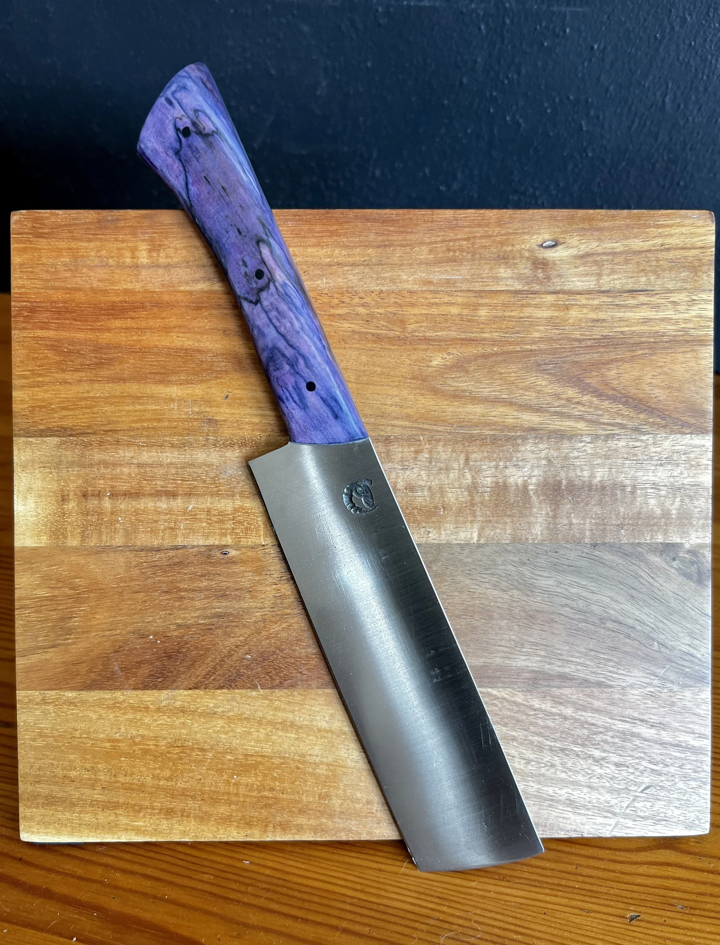 All wood handles go through a stabilization process where the wood soaks up resin and then is baked to seal it in. This process makes the wood harder and more durable. To help keep the wood protected, periodically place a food safe wax or oil on handle.