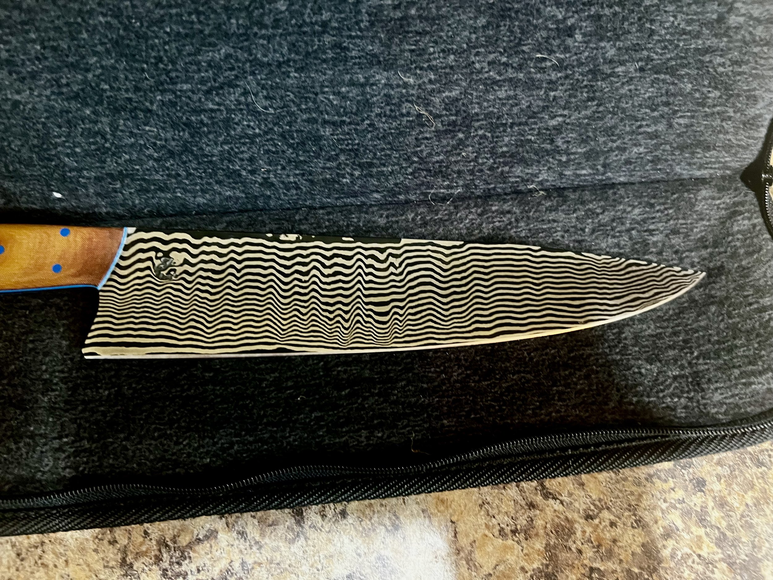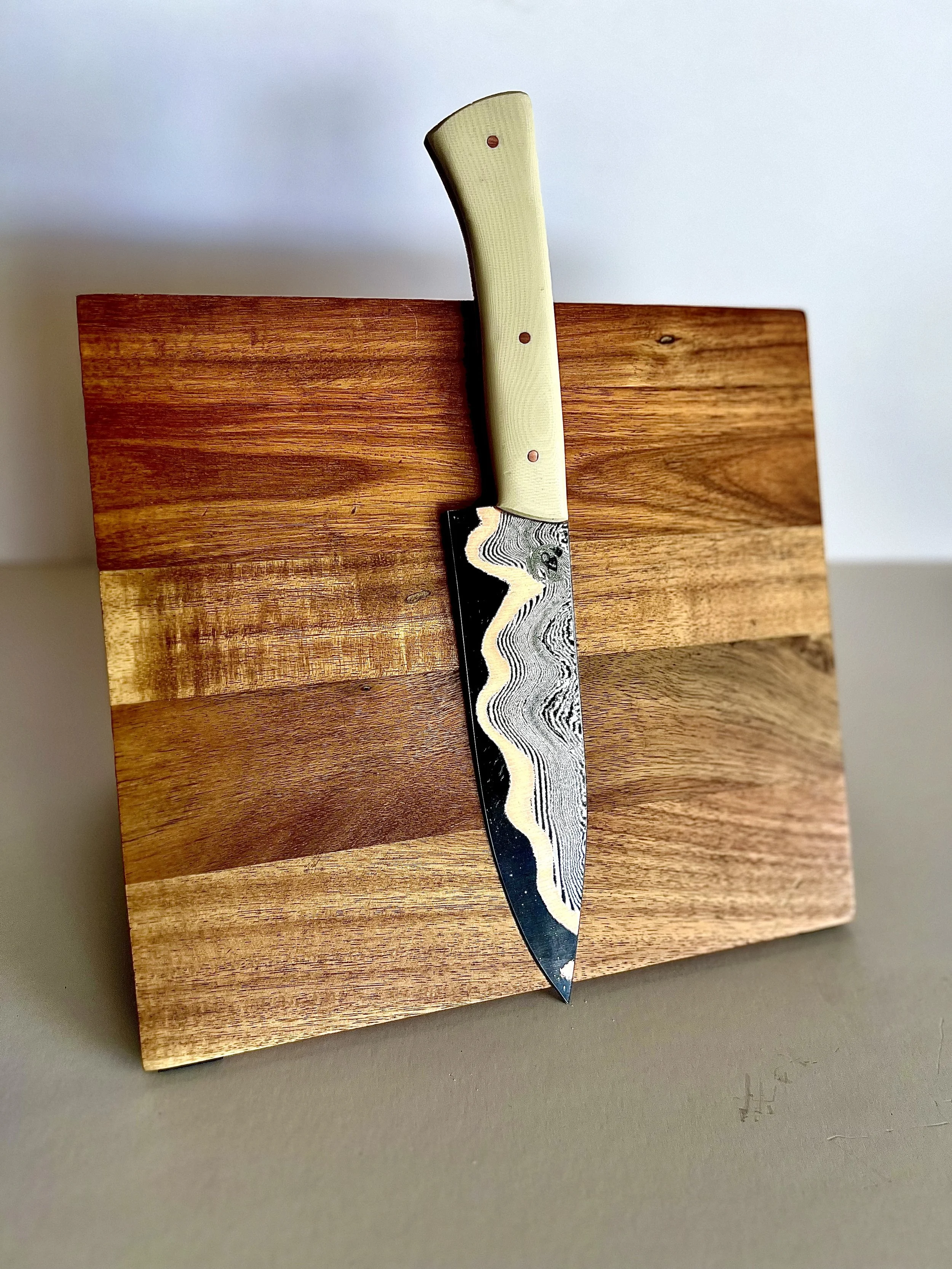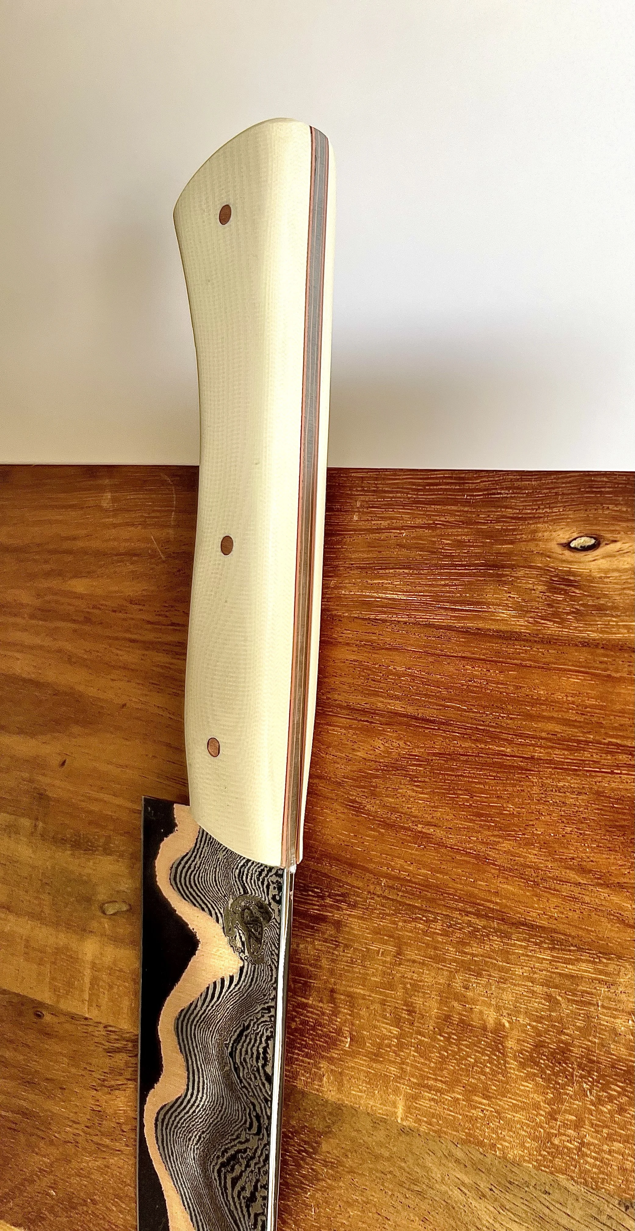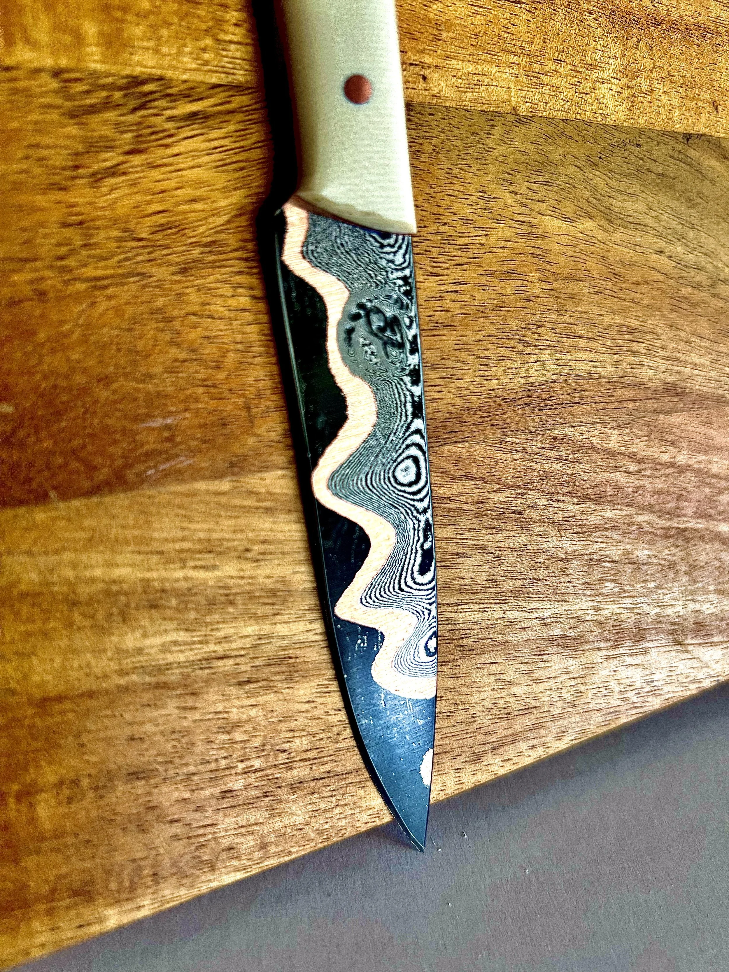 All wood handles go through a stabilization process where the wood soaks up resin and then is baked to seal it in. This process makes the wood harder and more durable. To help keep the wood protected, periodically place a food safe wax or oil on handle.